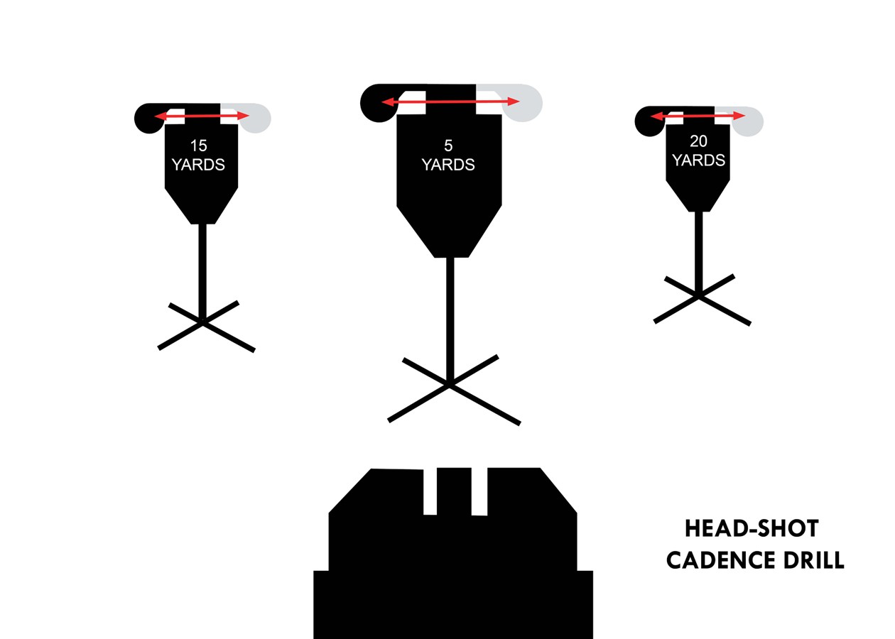 Here is a simple drill you can use to practice head-shots at varying ranges while fine tuning your shot cadence:
