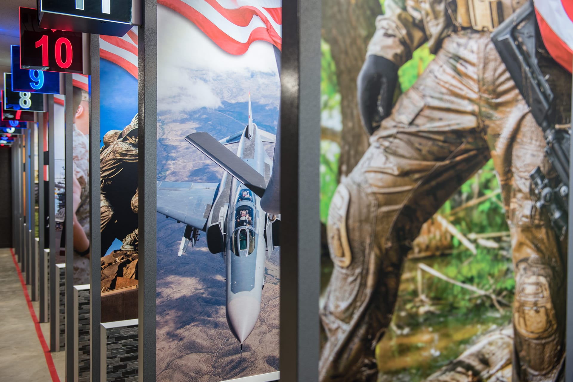 Back-lit stainless-steel nameplates display the lane number with crisp, low-glare visibility. Customize with your range logo or unit mark for quick identification and a professional, durable finish that reinforces wayfinding and brand presence.