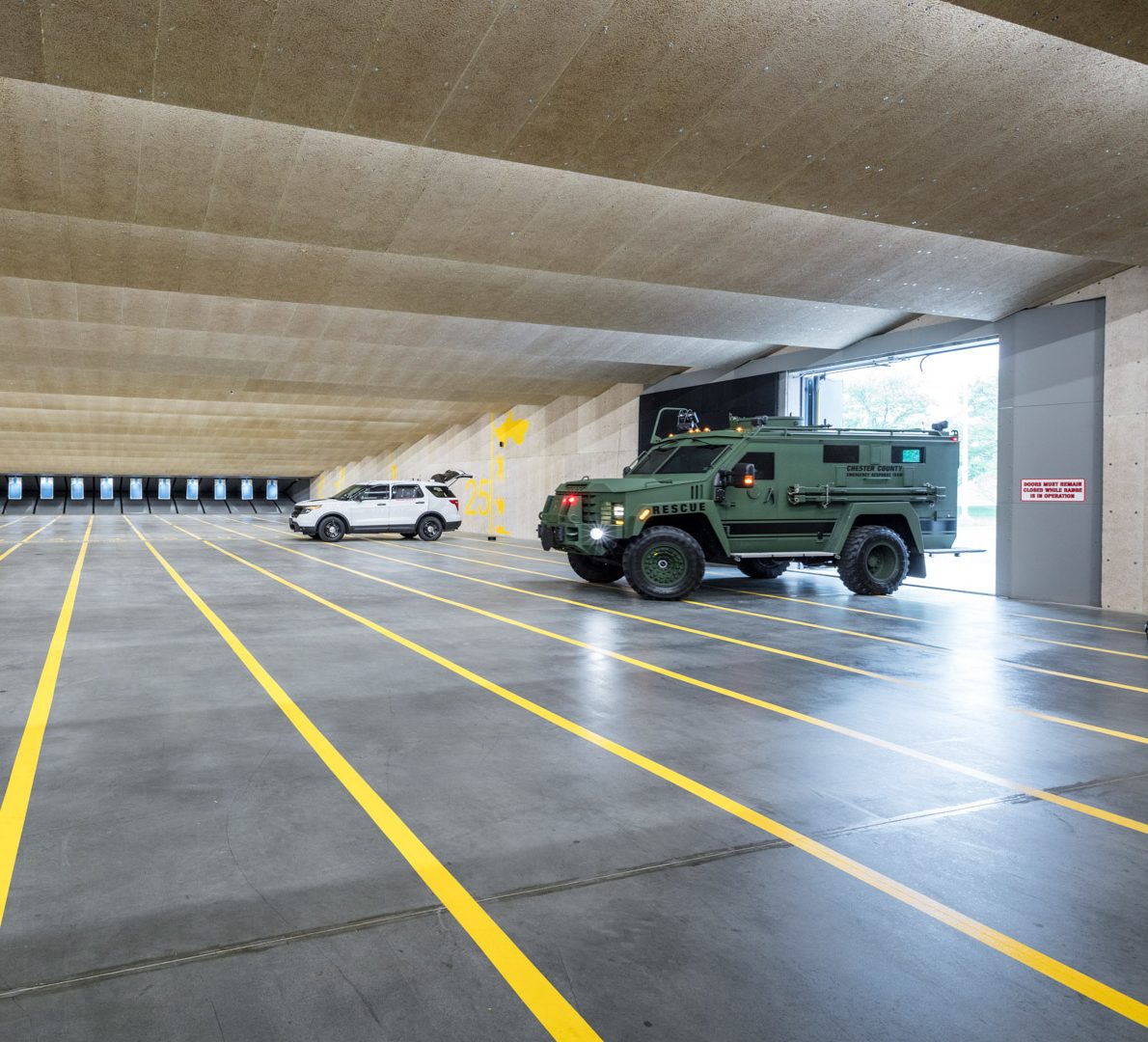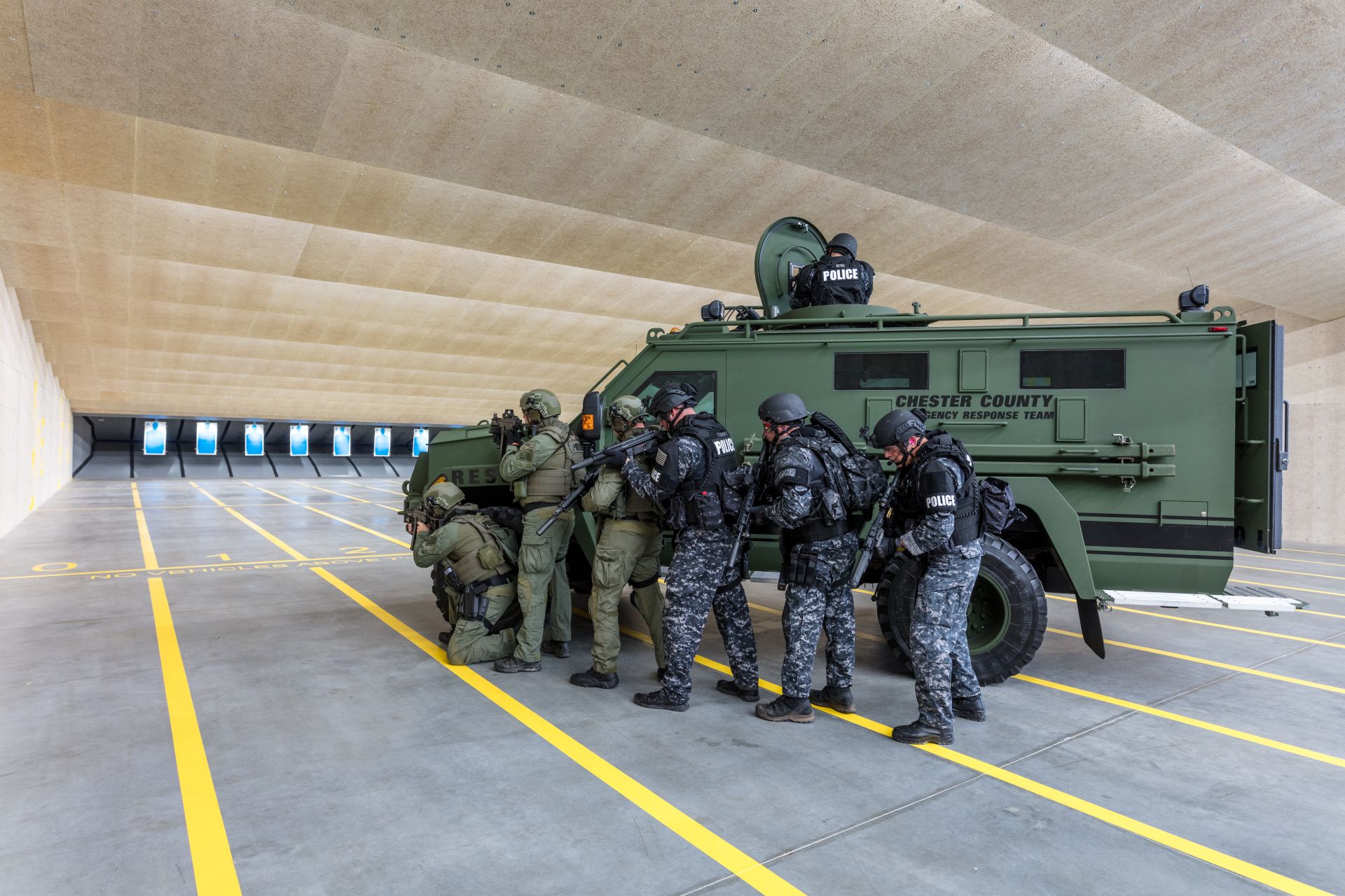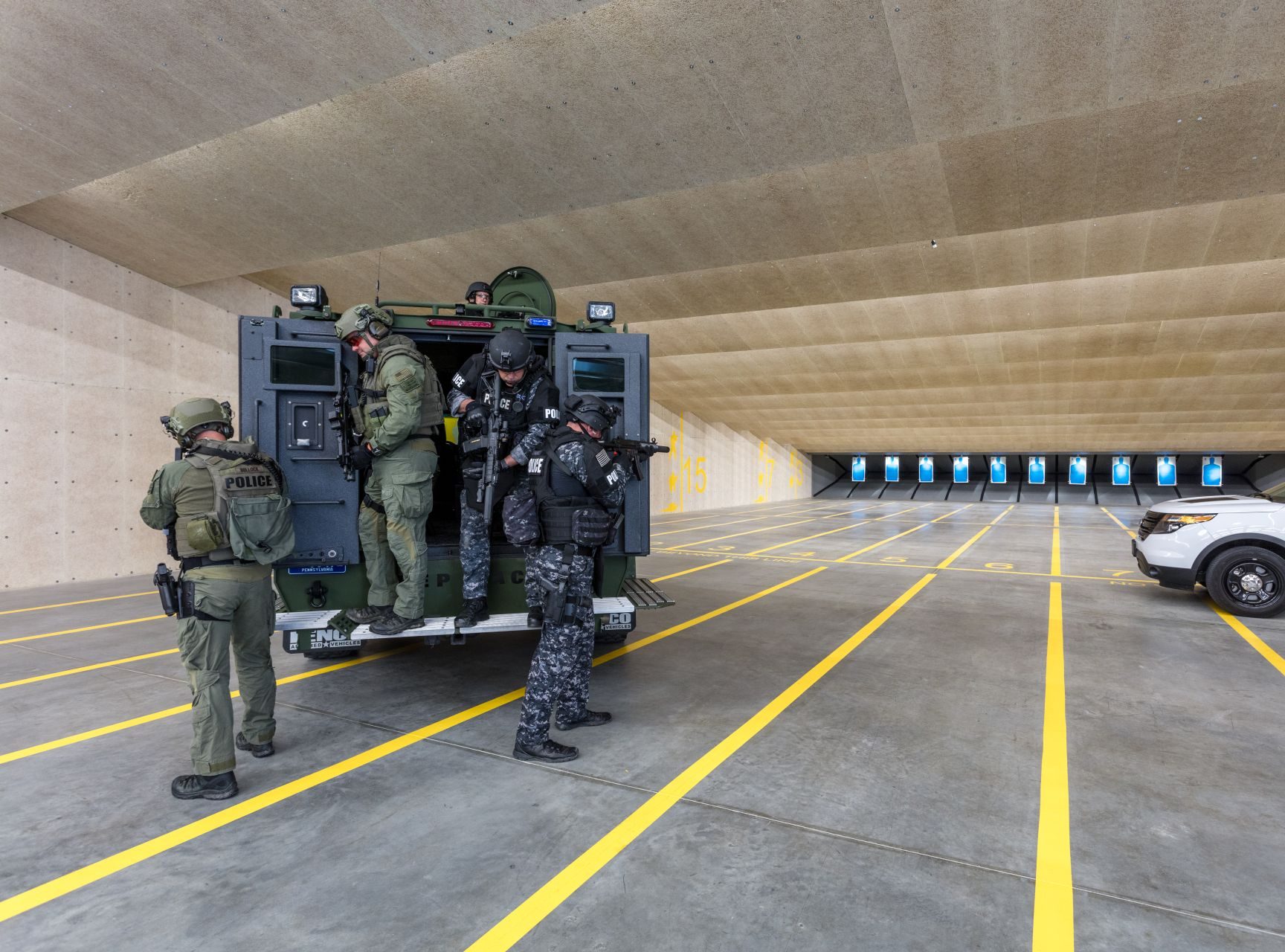 Configurable fascia packages tune splatter containment and sound abatement so agencies can meet acoustic targets and maintenance preferences for their range design.