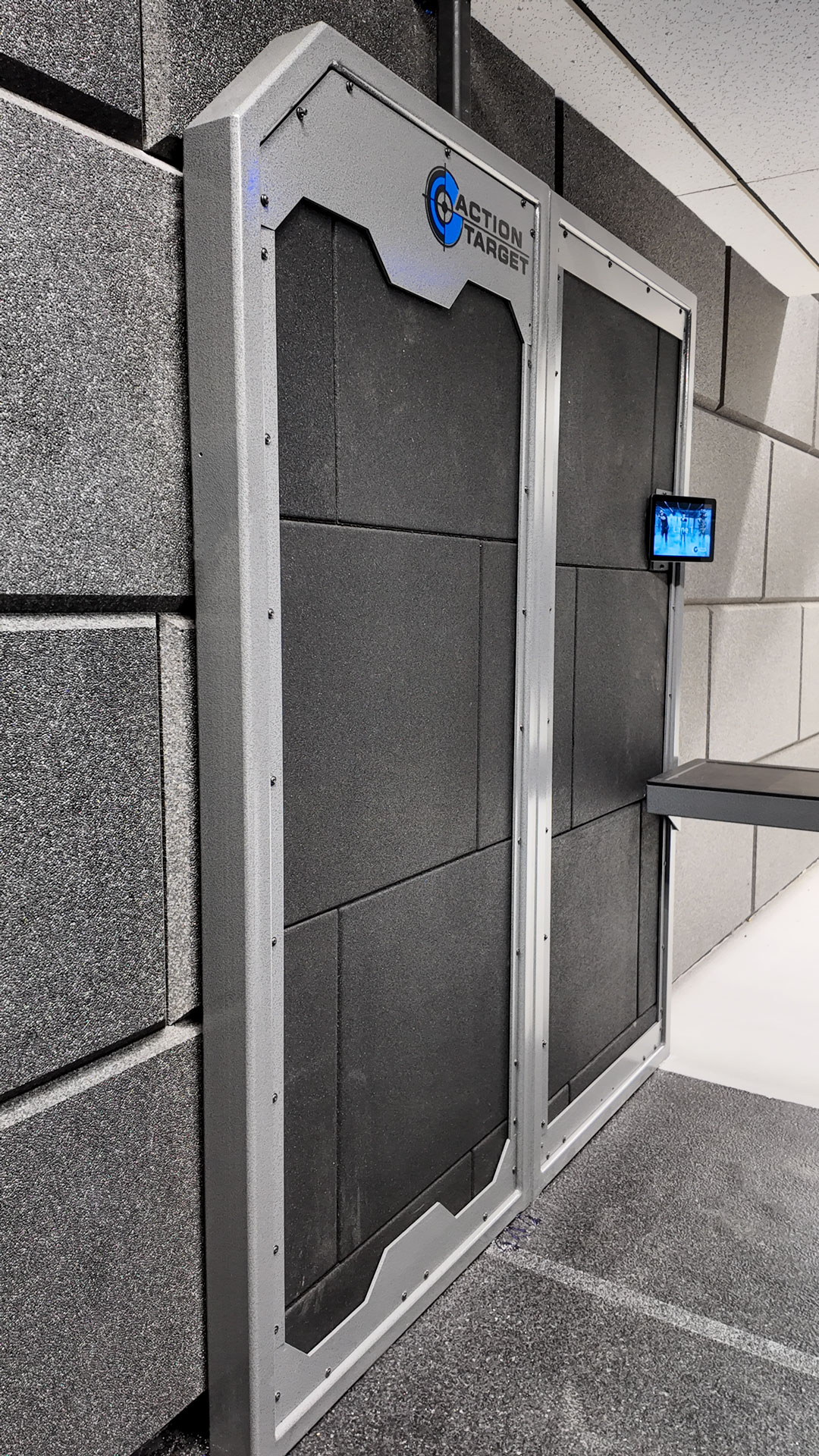 Sentry™ Deluxe doubles stall width with a second panel for a deeper footprint and more privacy. Configure with ballistic glass, ABS and steel-core panels, or a mix of both to match your range’s look while preserving clear supervision.