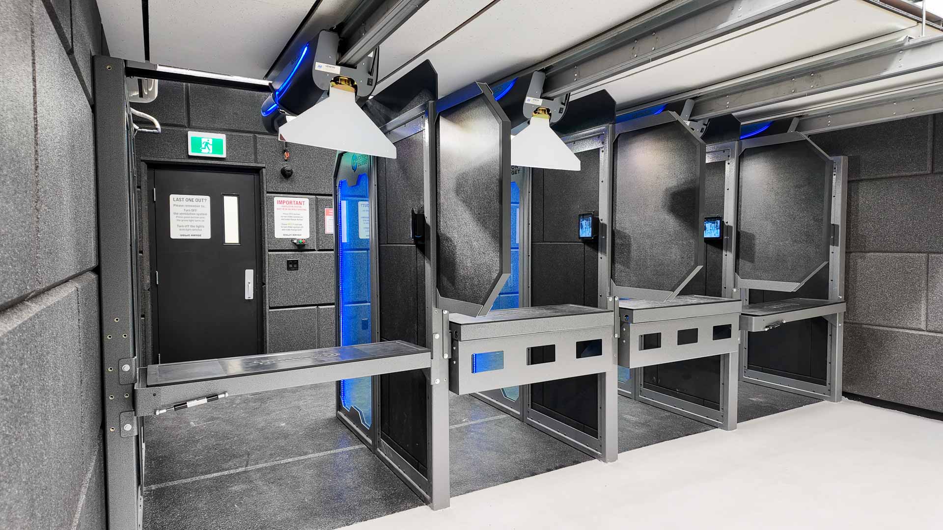 The Sentry™ Deluxe full-glass option puts ballistic glass on both front and back panels on the stall’s deeper footprint, maximizing lane-to-lane visibility and clear oversight while maintaining an open, bright environment for training.