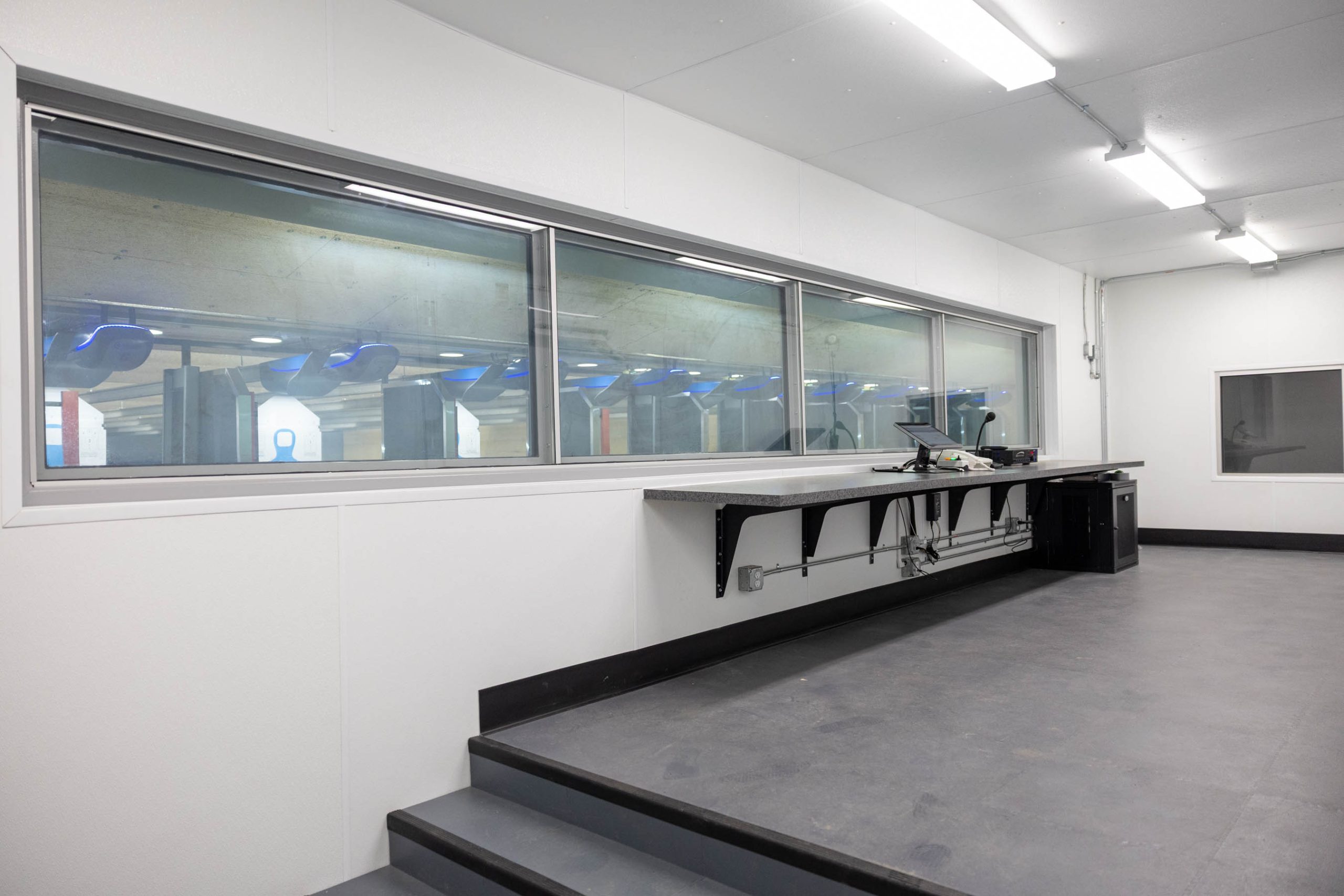 A 28-lane, 150′ wide indoor range designed for year-round training with high throughput, strong command/control, and reduced shooter fatigue.