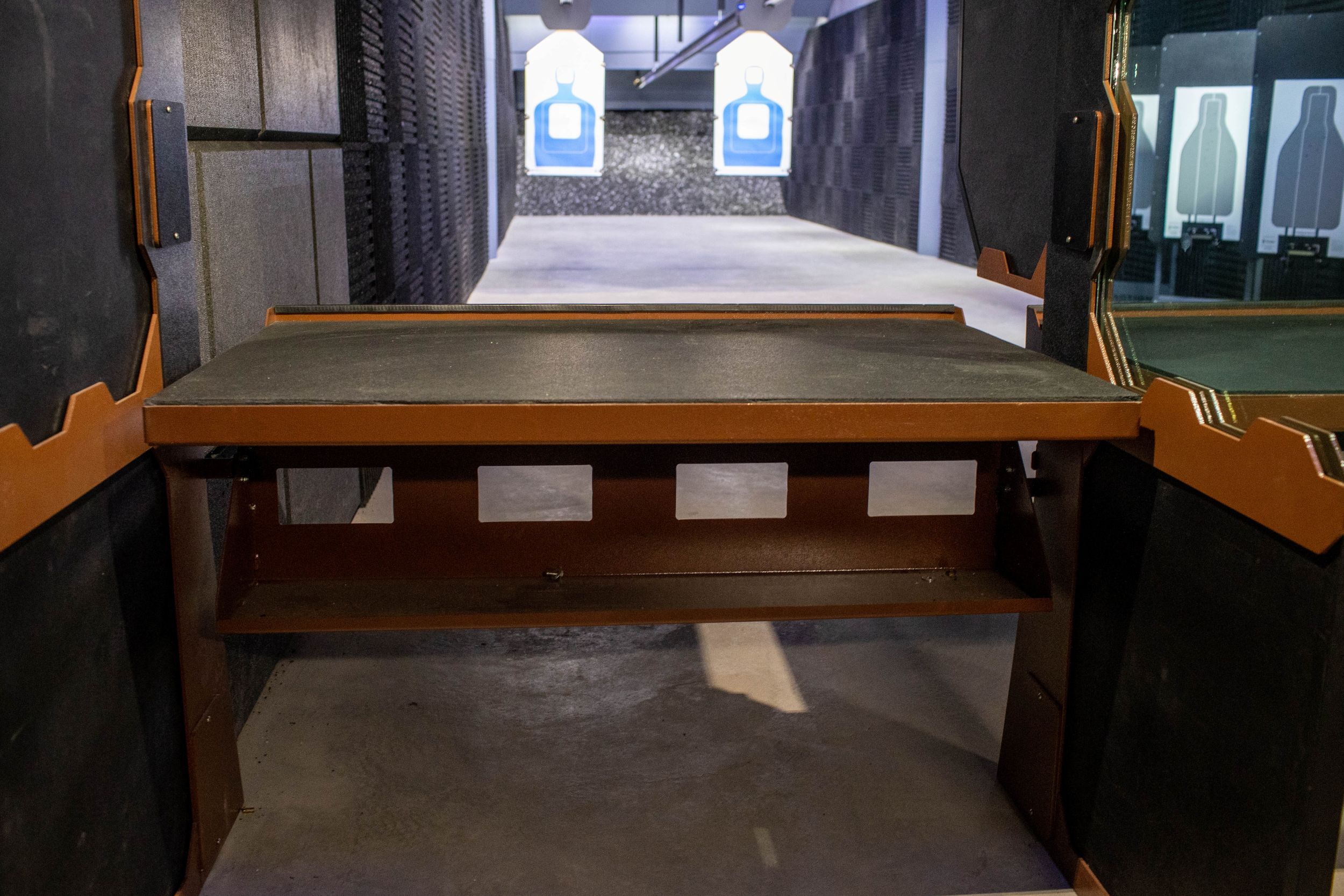 Comfort, aesthetics, and safety come together so this home shooting range feels as considered as the rest of the residence. From lane stalls to benches, each piece is tailored to the customer’s vision.