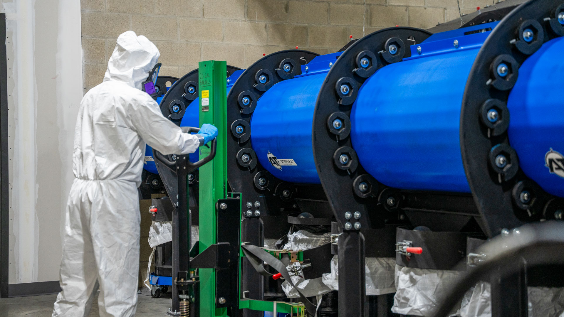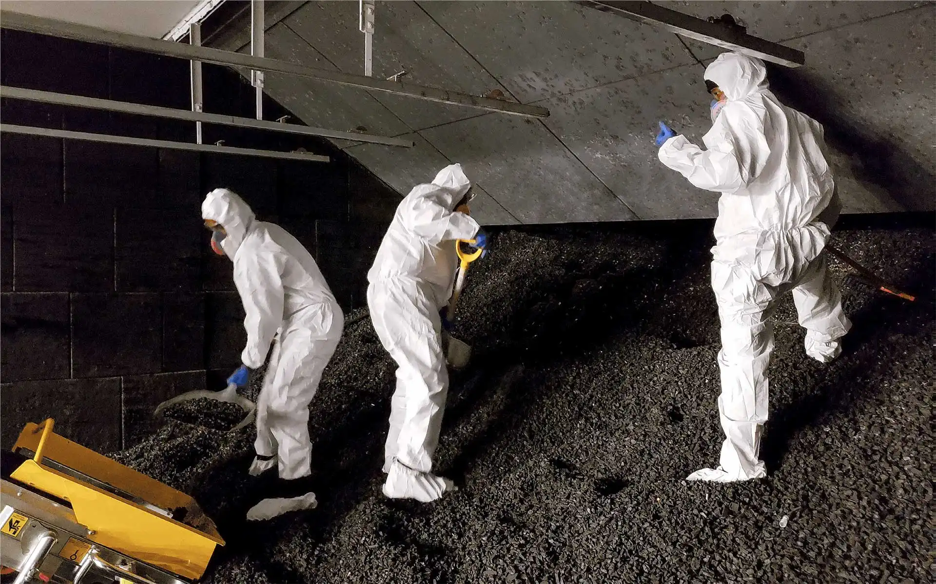 HEPA-vacuuming of floors, walls, baffles, stalls, and trap areas, plus filter changes and surface cleaning.
