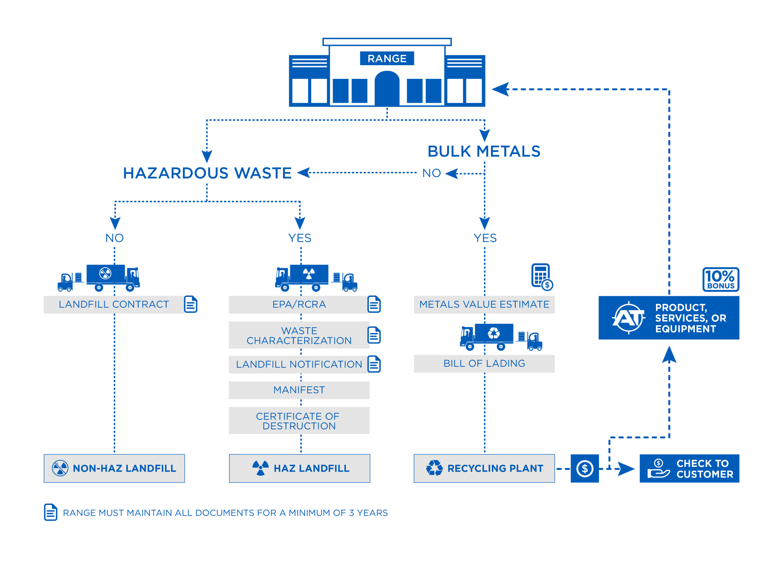 In one go, you can offload all range byproducts—recyclable metals like brass and lead, plus hazardous waste like PPE and filters.