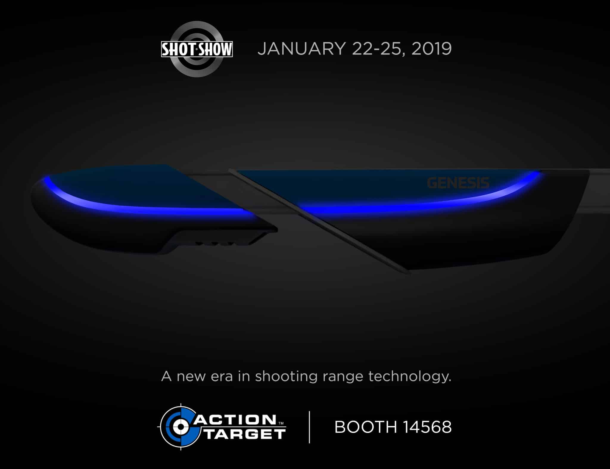 Action Target Shot Show 2019 promo featuring new shooting range technology and booth details.